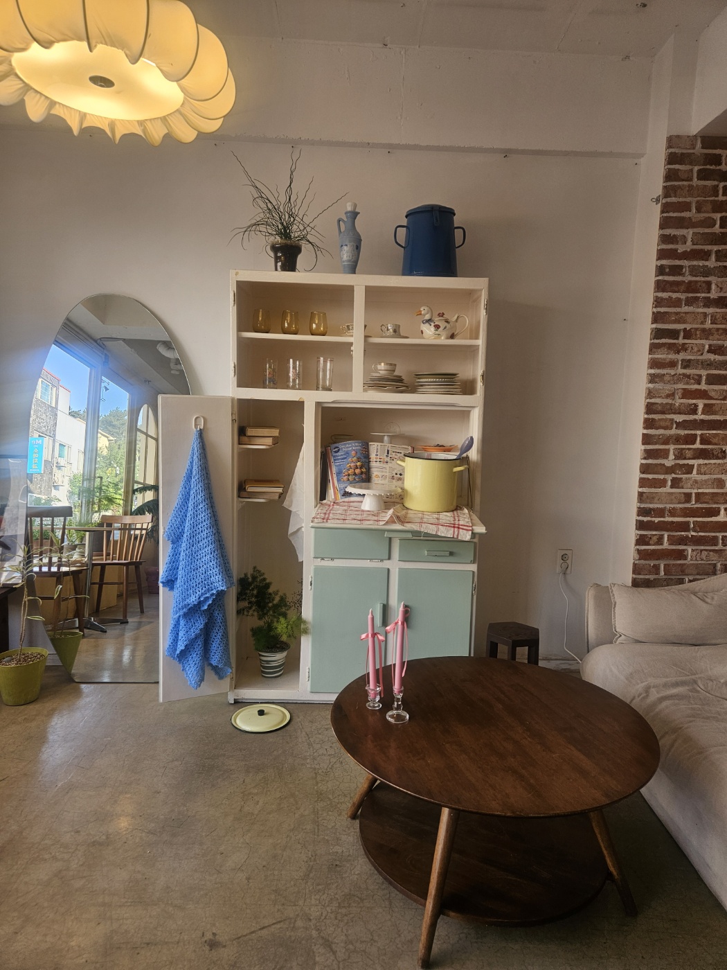 촐리케이크 매장은 아기자기한 인테리어와 유럽 감성의 소품들로 꾸며져 있습니다. 햇살 좋은 날에는 창문을 활짝 열어 유럽 골목길 카페에 온 듯한 느낌을 주며, 공간 곳곳에 숨은 거울과 앤티크 소품이 배치되어 있어 방문하는 재미를 더합니다.