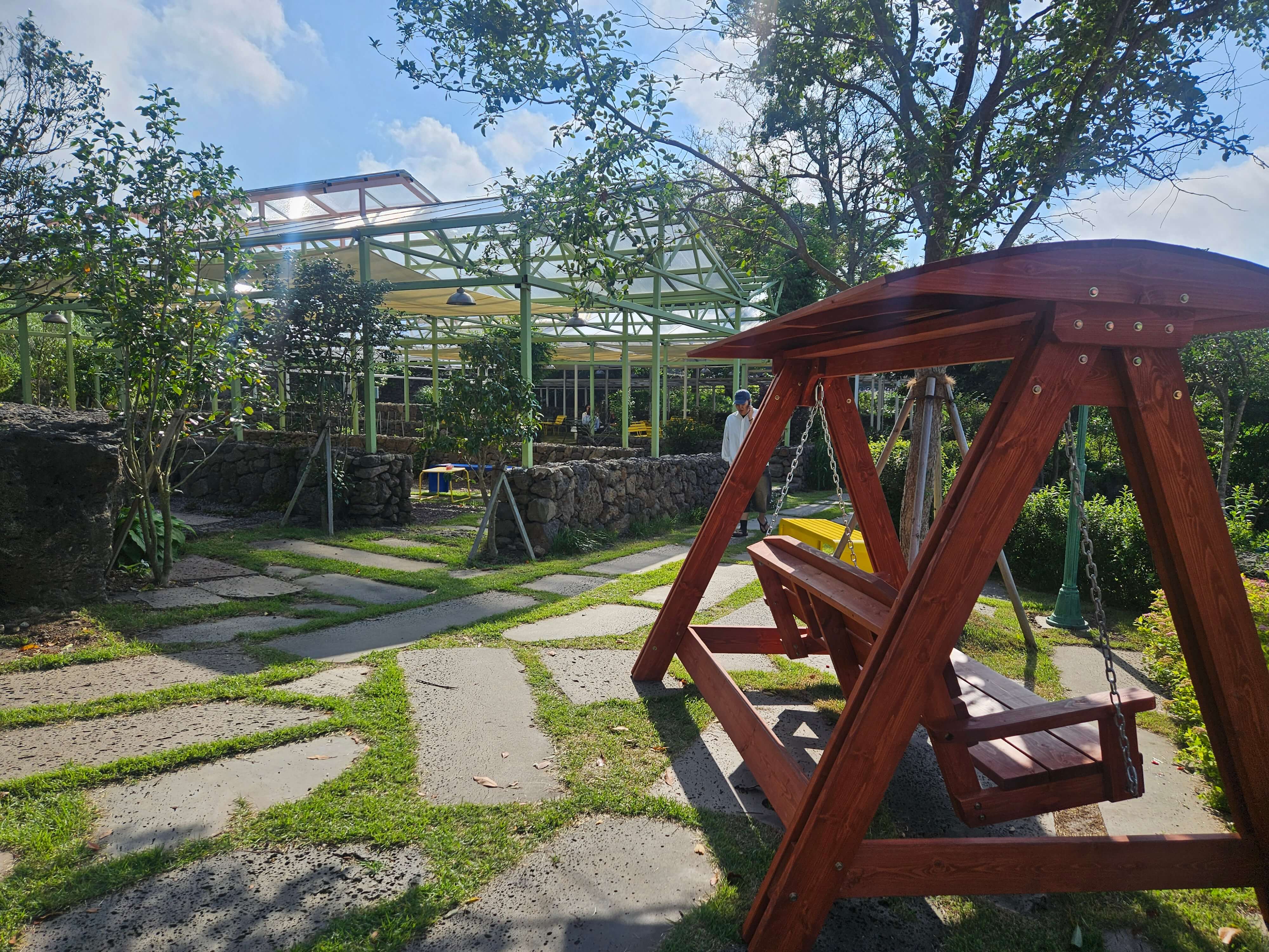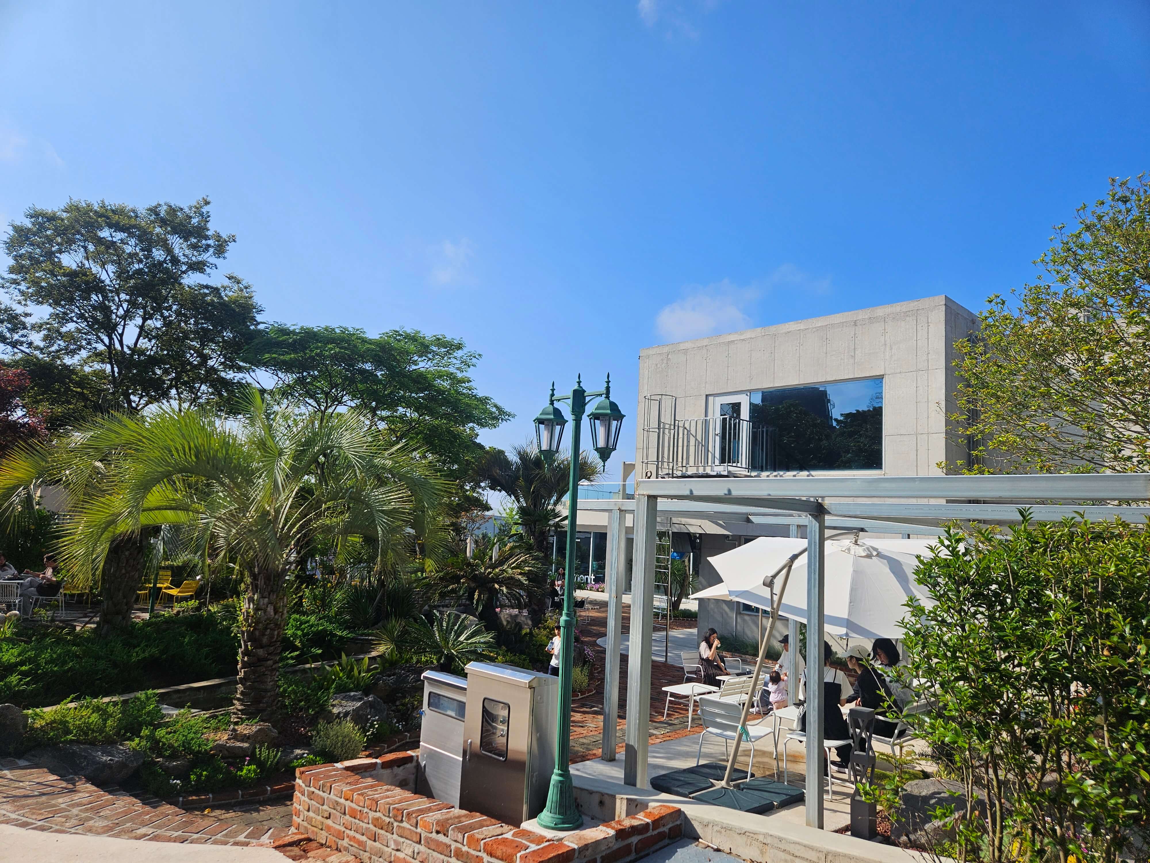 조경수들이 자연스럽게 자리 잡혀 있어서 마치 작은 제주 공원 속에서 커피를 마시는 느낌이랄까요?