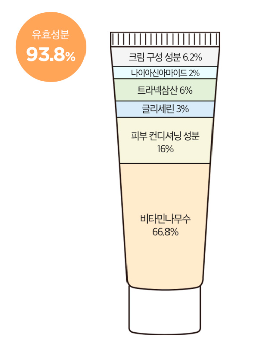 ㄴ 피부과 테스트완료ㄴ 정제수 대신 비타민 나무수 66.8% 사용