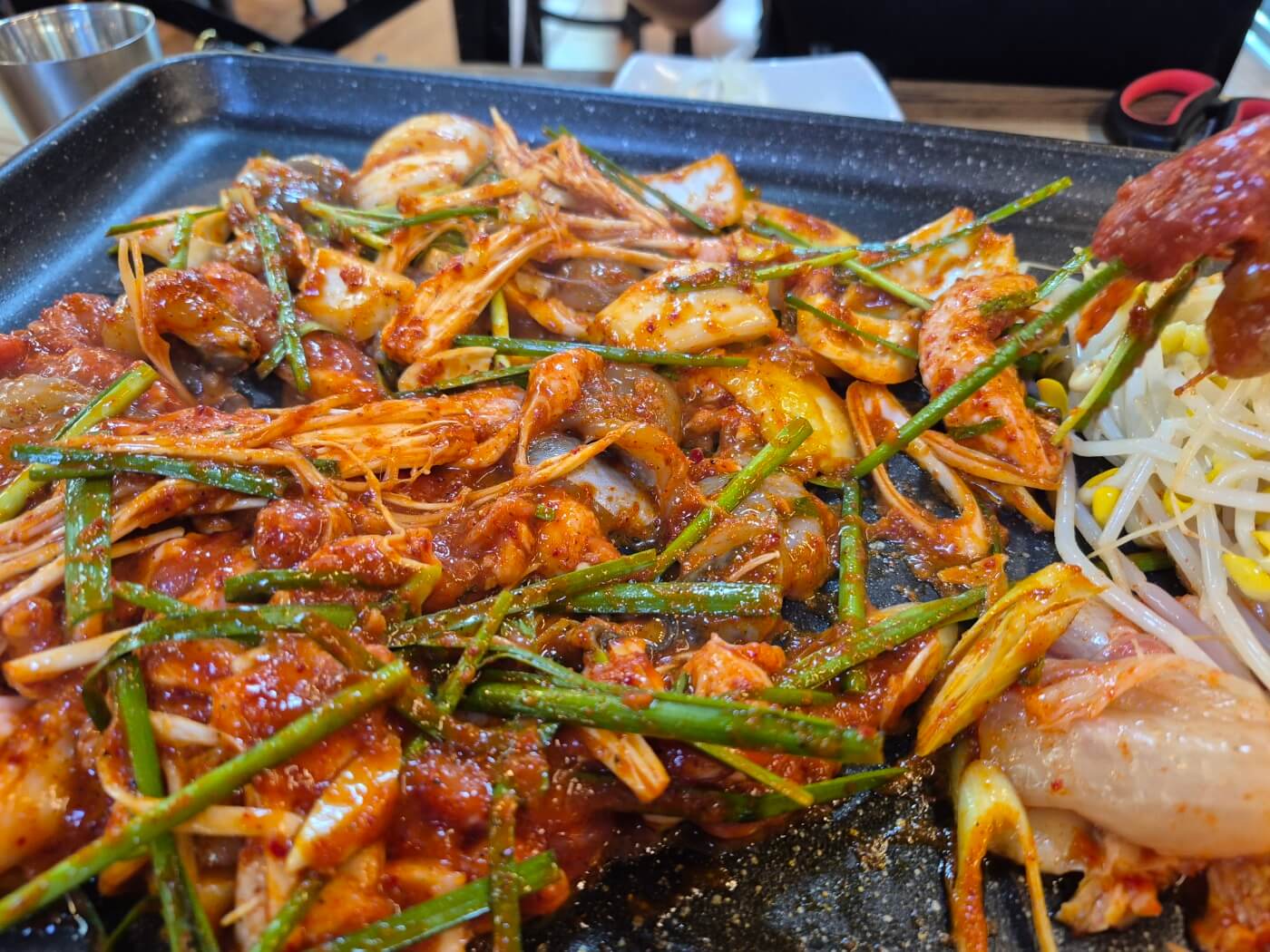 이오리의 가장 큰 장점은 다양한 오리요리 구성이 가능하다는 점이에요. 오리주물럭, 생오리구이, 오리대패, 그리고 ‘오쭈오쭈(오리+쭈꾸미 콜라보)’까지 선택 폭이 넓고, 심지어 주물럭 반마리도 주문 가능해서 둘이서 가도 부담 없답니다.